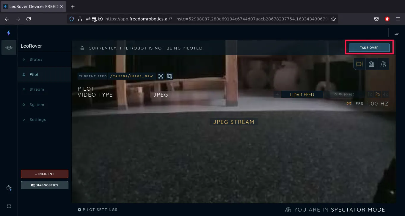 Click Take Over in the upper section of the video stream.